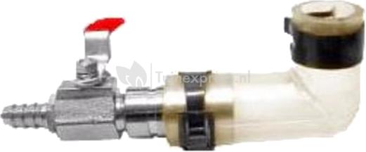 Universele aansluitset met bocht voor luchtpompen. De kogelkraan heeft een aansluittule van 9 mm. Inclusief twee slangenklemmen. Het set is onder andere geschikt voor de Hiblow serie 40/60/80 en de DY serie 20/40/60/80.