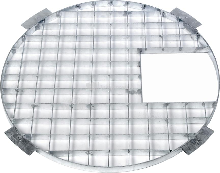 Het metalen afdekrooster is gemaakt van gegalvaniseerd staal in een ronde vorm. Met het juiste bassin komt het afdekrooster op gelijke hoogte te liggen met de rand en kan hij met speciale klemmen op de rand worden vastgezet. Bij een gelijkmatige belasting kan het rooster een hoog gewicht tot een maximum van 150 kg dragen. Dankzij de rasteropening van 5 x 5 cm kunnen de slangen van het decoratieve element naar iedere positie worden geleid en door middel van de service opening is de vijverpomp altijd bereikbaar voor eventuele onderhoud. Om de service opening te dichten is er een afzonderlijk inzetstuk beschikbaar (niet inbegrepen). Het afdekrooster is verkrijgbaar in verschillende diameters.
