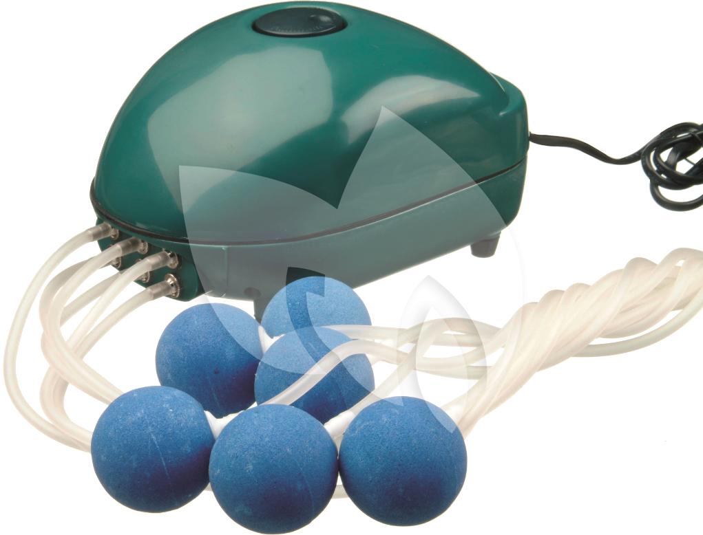 De zuurstof wordt via een of meer bruisstenen, die via een slang met de beluchtingspomp zijn verbonden, rechtstreeks in het vijverwater of vijverfilter gepompt. Ubbink beluchtingspompen werken met membranen. Er is één membraan per uitgang. De membraan wordt via een magneet in beweging gezet, neemt lucht op en geeft deze door de beweging weer af. De hoeveelheid getransporteerde lucht is afhankelijk van de sterkte van de magneet.