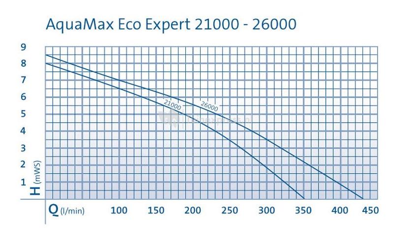 De transporthoeveelheid van de AquaMax Eco Expert vijverpomp bedraagt (afhankelijk van de uitvoering) tot circa 21.000/26.000 liter water per uur, en dat met een energieverbruik van slechts maximaal 350/440 Watt. De vijverpomp heeft een zeer goede effectiviteit en tevens een uitstekend transport van grove vuildeeltjes met een korrelgrootte tot 11 millimeter.