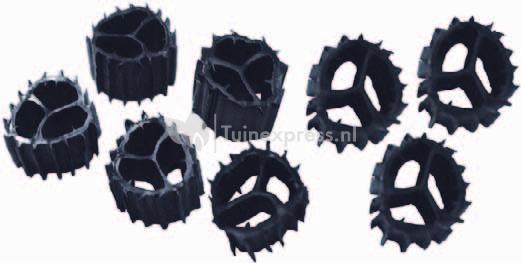 Dit bio medium is ontworpen als dragermateriaal voor micro organismen om in drijvende of bewegende toepassing water te filteren. De speciale vorm van het medium zorgt voor een groot oppervlak voor de dunne biofilm en voor optimale omstandigheden voor de groei van micro organismen.
