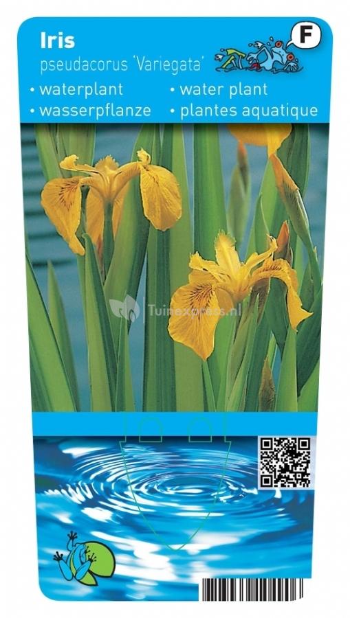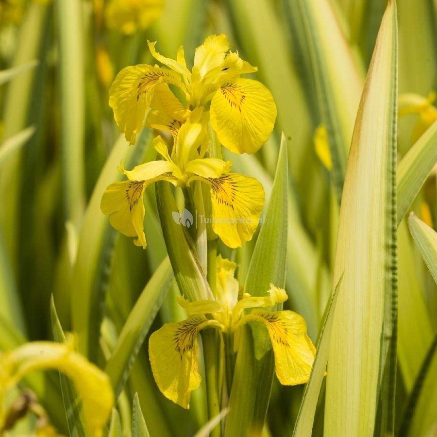 De bonte gele iris onderscheidt zich van de gewone gele iris door het gekleurde blad van de plant: het groene blad kent gele strepen waar de kleur 'bont' op duidt. De groen/gele bladeren worden ongeveer 70cm hoog. De plant kan met bloemen een hoogte aannemen van 100cm. De opvallende gele bloemen sieren de iris in mei en juni. Een zeer geschikte plant wanneer u een zo natuurlijk mogelijk watertje wilt nabootsen in uw tuin.