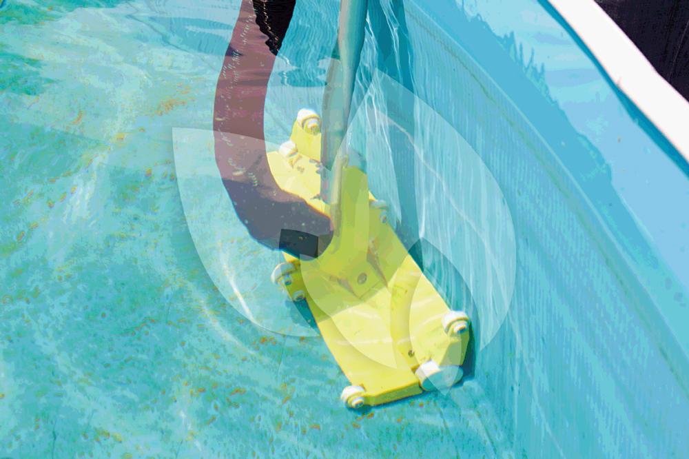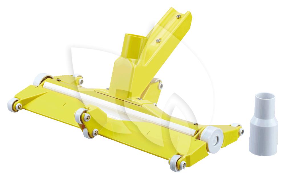 De borstel zuigmond is een zwaar oppervlakmondstuk met een gewicht van 4 kg en een breedte van 480 mm. Dit mondstuk is voorzien van een borstelstrip met verzegelde deksel en vorm gegeven in een felle kleur voor een betere zichtbaarheid op de grond. De zuigmond pakt effectief het vuil op grote oppervlakken aan en beschikt over een handig scharniermechanisme, wat zorgt voor een soepele overgang tussen de bodem en wand van een zwembad of zwemvijver.