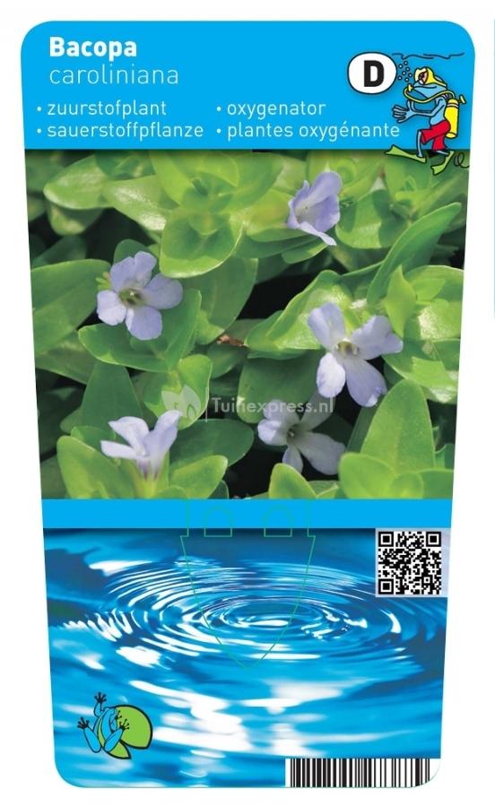 Brede bacopa is een veelgebruikte aquariumplant omdat hij weinig eisen stelt aan de kwaliteit van het water. Naast aquariumplant is bacopa ook zeer geschikt om in uw vijver te gebruiken. Bacopa is een stengelplant en het is daarom aan te raden de plant in groepjes te zetten.  De brede bacopa bloeit vanaf mei tot augustus met kleine lila bloemetjes. Bacopa is niet winterhard, de ideale temperatuur voor bacopa is 15-28 graden, vandaar ook dat het vaak in aquaria gebruikt wordt. In de winter dient u het plantje dus naar binnen te halen. De brede bacopa is een zuurstofplant, deze planten zijn belangrijk in uw vijver omdat zij bijdragen aan helder vijverwater. De bacopa is niet enkel een praktisch plantje, de bloemetjes maken dat de plant ook zeer decoratief is in gebruik.