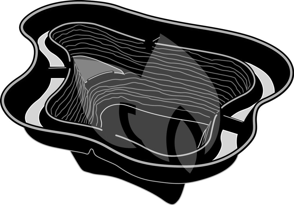 - Door een optimale afstemming van de lengte, breedte en diepte van de vijver wordt een functionerend biologisch evenwicht gerealiseerd
