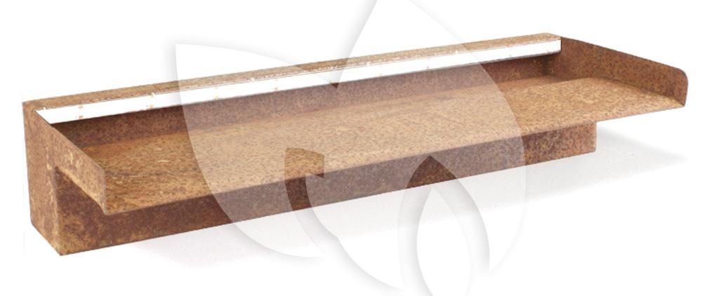 De Cortenstaal 45 centimeter waterval LED is een uniek waterelement gemaakt van staal met een beschermende roestlaag. Deze roestlaag vormt een bescherming tegen verdere corrosie en zal dus niet verder roesten zoals andere stalen. De beschermende roestlaag geeft de waterval een uniek uiterlijk en brengt een natuurlijke sfeer in uw vijver of tuin. De waterval heeft een breedte van 45 centimeter en heeft een brede waterfilm waardoor het water weer rustig terug de vijver instroomt. De uitloop van de waterval is 10 centimeter en dit geeft een ontspannen geluidseffect. De LED verlichting in de waterval zorgt in de avonduren voor een prachtige lichstemming.