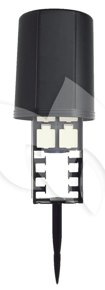 De InScenio 230 is een 4-voudige stekkerdoos voor de tuin, waarmee desgewenst later op voordelige en eenvoudige wijze een 230 V-ringschakeling kan worden gerealiseerd. De stekkerdoos is voorzien van trekontlasting voor bescherming tegen mechanische belasting en beschikt over een afdekking voor bescherming tegen spatwater. Zonder zorgen kunt u de stekkerdoos veilig het hele jaar door gebruiken. Bij de levering is een grondpen inbegrepen waardoor u de InScenio 230 eenvoudig en veilig kan installeren in de grond.