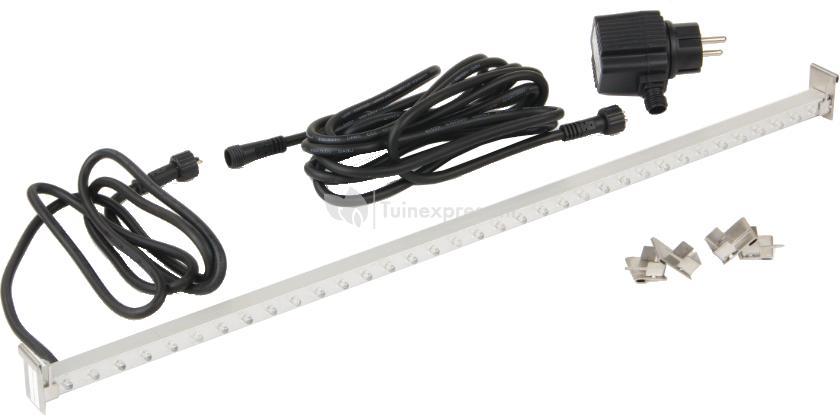 De ledstrip is verkrijgbaar in drie verschillende afmetingen die ieder voorzien zijn van leddioden. De ledlampjes stralen een sfeervol blauw licht uit en doen uw waterval mooi oplichten in het donker. Bij de de led-verlichting zijn een transformator, een 5 m kabel en bevestigingsclips inbegrepen.