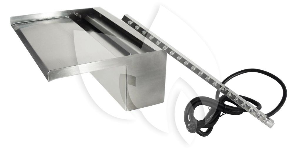 De Niagara 30 rvs muur waterval LED is dankzij de langere uitloop vooral geschikt voor muurwanden, steenkorven (gabionen) of andere materialen. Ook blijft de installatie aan de voorwand mogelijk. De waterval is voorzien van twee aansluitmogelijkheden aan de onderkant en de achterkant zodat u hem zowel aan een muur kan bevestigen, inmetselen in een muur of als losstaand element bij uw vijver kunt plaatsen. De Niagara 30 rvs waterval is voorzien van prachtige ledverlichting welke 's avonds voor een stemmige verlichting zorgen. Wanneer de led-strook vervangen dient te worden, hoeft u de waterval niet te demonteren. De led-strook kan heel gemakkelijk losgemaakt en vervangen worden.