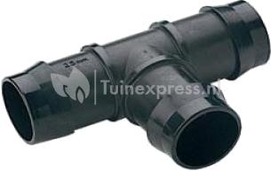 Polypropyleen t-stuk slangverbinder. Voor bijvoorbeeld het verbinden van drie stukken vijverslang.