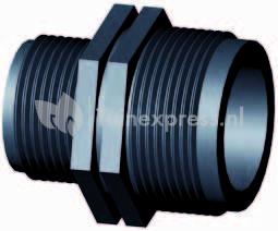 PP verloopnippel voorzien van buitendraad aansluiting. Voor het verbinden van bijvoorbeeld schroefbussen.
