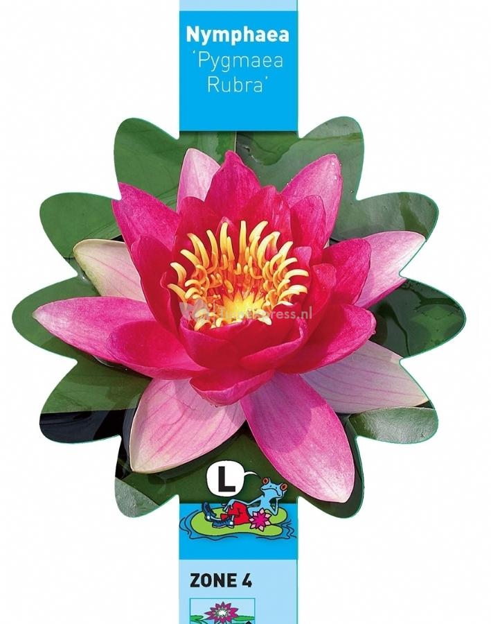 De roze dwergwaterlelie bloeit met kleine rode bloemen tussen een diepgroen blad. De bloemen blijven klein met een afmeting van 3-5cm. Hierdoor is de waterlelie uitermate geschikt voor de wat kleinere vijvers, hij heeft namelijk ook maar een diepte nodig van 15-40cm. De ideale oplossing wanneer u graag van betoverende waterlelies wilt genieten maar niet beschikt over een voldoende diepe en grote waterpartij.