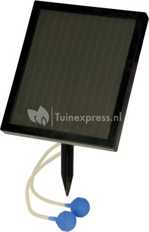 Deze Solar luchtpomp is een beluchtingspomp op zonne-energie. De energie wordt vekregen middels een afzondelijk zonnepaneel. Deze bijzondere luchtpomp zorgt voor de toevoeging van zuurstof in uw vijver, waardoor de kwaliteit van het water vebeterd wordt. Het zonnepaneel is gemakkelijk middels een grondpen in de tuin te plaatsen. Richt het zonnepaneel altijd richting de zon voor een optimaal rendement. De solar luchtpomp wordt inclusief toevoerslang, terugslagventielen en twee luchtstenen geleverd. Hou uw vijver helder, zuurstofrijk en gezond met deze handige Solar luchtpomp!