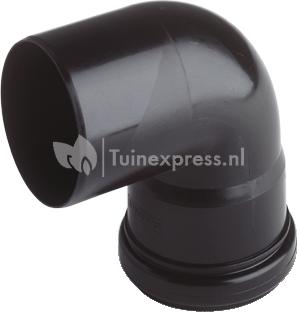 90 graden bocht met spie en manchet verbinding. Schuif de manchet zijde simpelweg over een buis heen, de spie zijde kan in een andere manchet koppeling gestoken worden. Alleen geschikt voor toepassingen waarbij geen druk op de leidingen komt te staan. Bijvoorbeeld toepasbaar bij het maken van de retourleiding van een doorstroomfilter.