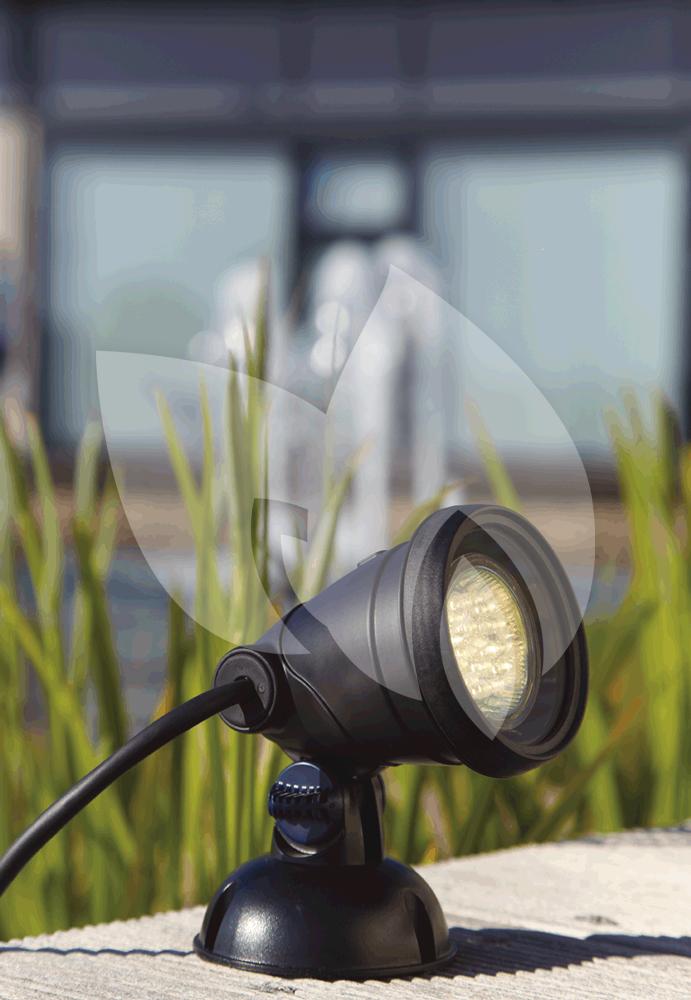 De LunAqua Classic LED Set 1 is een allround set voor zowel boven water als onder water gebruik. Vanwege zijn compacte bouwvorm is de schijnwerper perfect in de meest verschillende omgevingen te integreren. Deze led-verlichting is bijzonder energie-efficiënt en beschikt over een verstelbare kop waardoor hij in elk gewenste positie geplaatst kan worden. Tip: belicht uw planten en andere voorwerpen in uw tuin steeds van onder naar boven om ze perfect tot hun recht te laten komen.