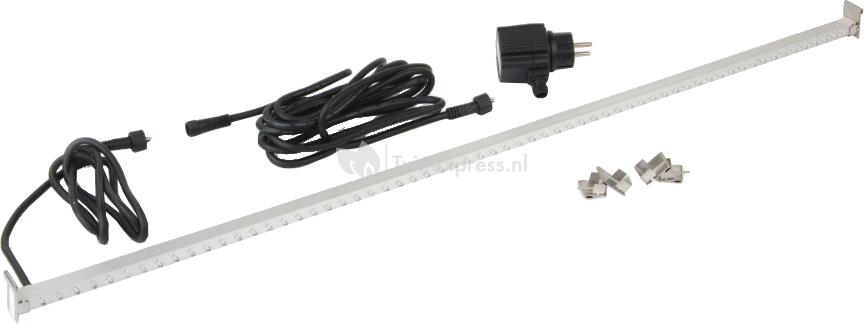 De ledstrip is verkrijgbaar in drie verschillende afmetingen die ieder voorzien zijn van leddioden. De ledlampjes stralen een sfeervol blauw licht uit en doen uw waterval mooi oplichten in het donker. Bij de de led-verlichting zijn een transformator, een 5 m kabel en bevestigingsclips inbegrepen